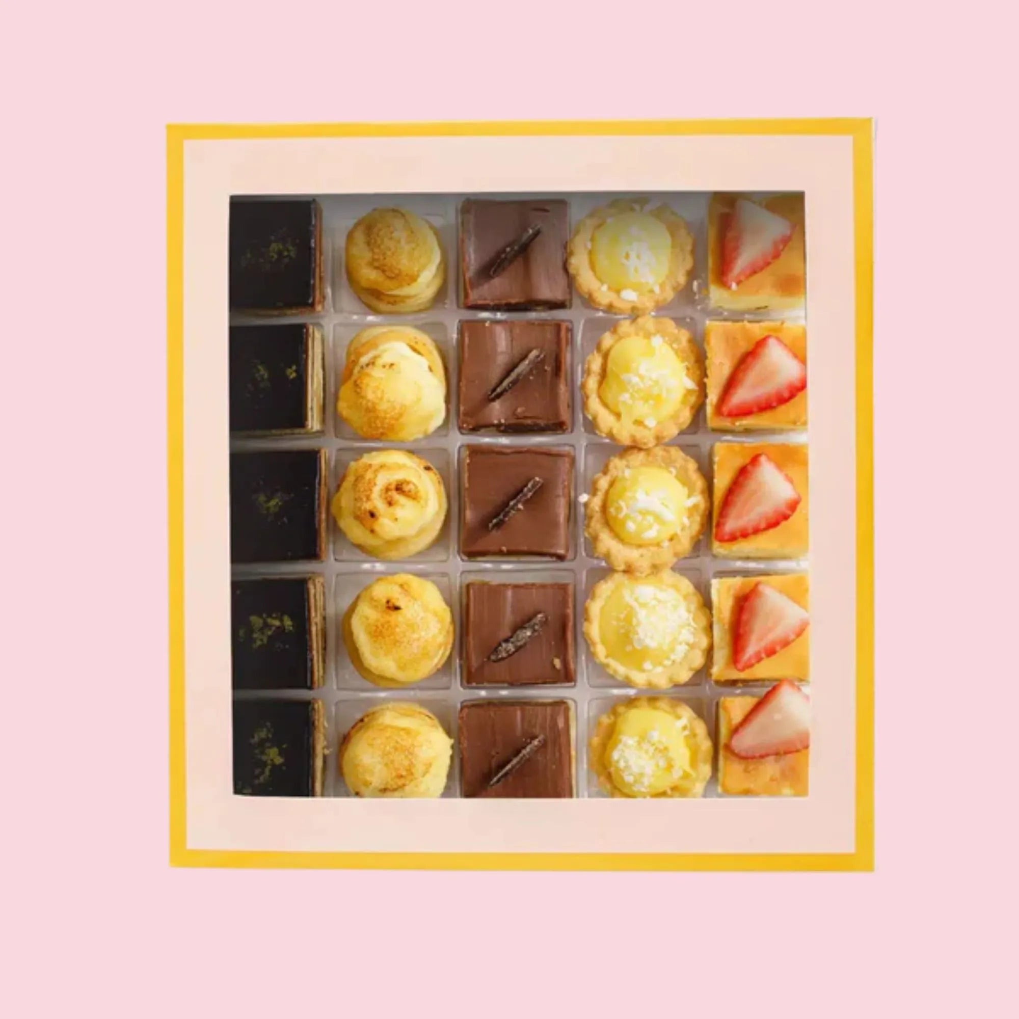 Crème brûlée in Vol-au-ventJivara Milk ChocolateOperaPavlovaLemon tart 25 pieces set