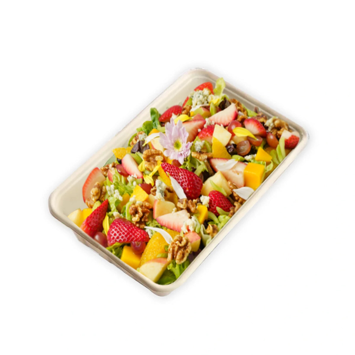 US Strawberries, grapes, mango, orange, apple, candied walnuts and mixed greens with blue cheese and balsamic vinaigrette. 500 grams Good...