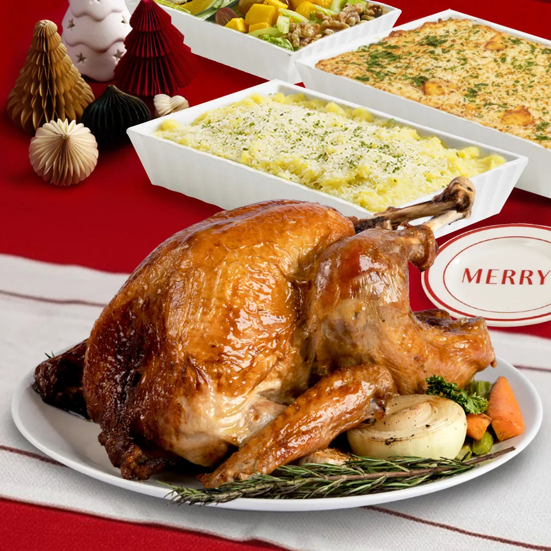 Whole Roast Turkey with Apple, Sausage and Chestnuts stuffing (approx. 5.5 kg)Haricot with Orange Zest Peach Waldorf Salad Linguine with Ricotta Parmesan Mashed Potato...