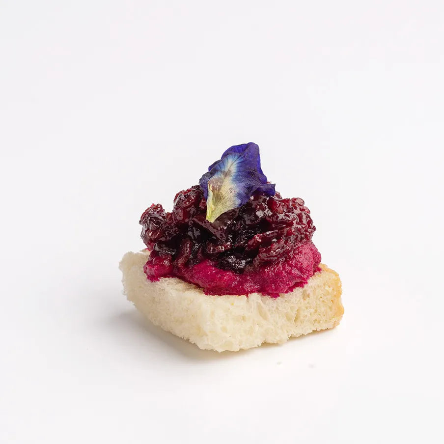 Beet Hummus, Caramelized Beets, Bacon, Potato Ring