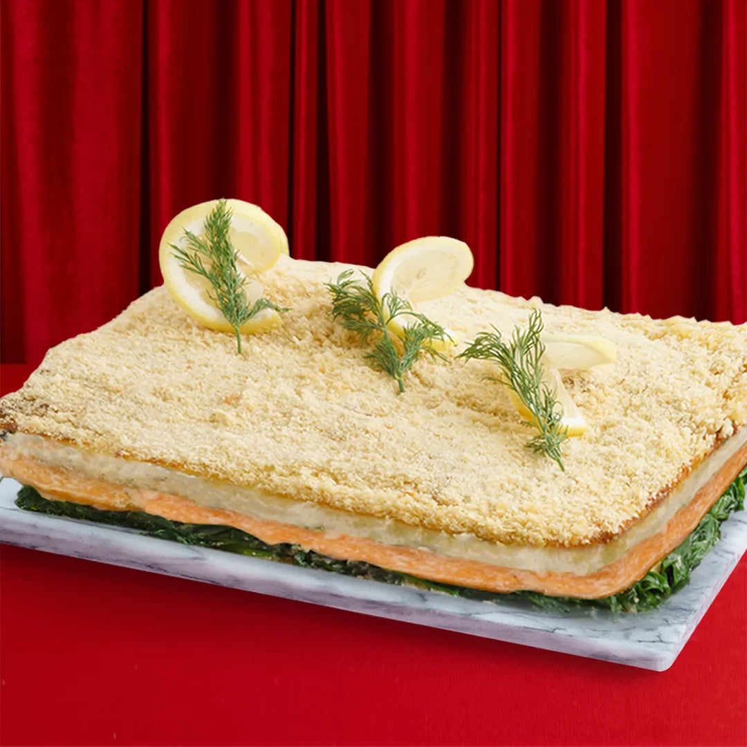 Our baked Norwegian salmon layered with mashed potatoes and creamy spinach topped with parmesan mornay sauce 750g Good for 5...