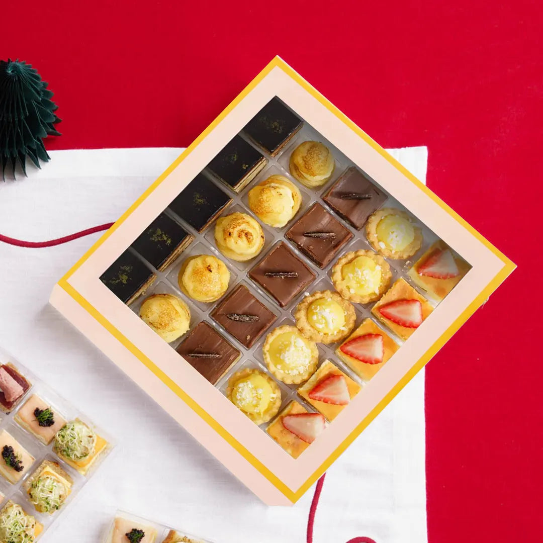 Inclusions: Opera CakeJolie Sugarless & FlourlessFresh Mango ChiboustStrawberry ChiboustFresh Fruit Tart16 pieces set Lead Time: 2 daysShelf life: Consume Immediately