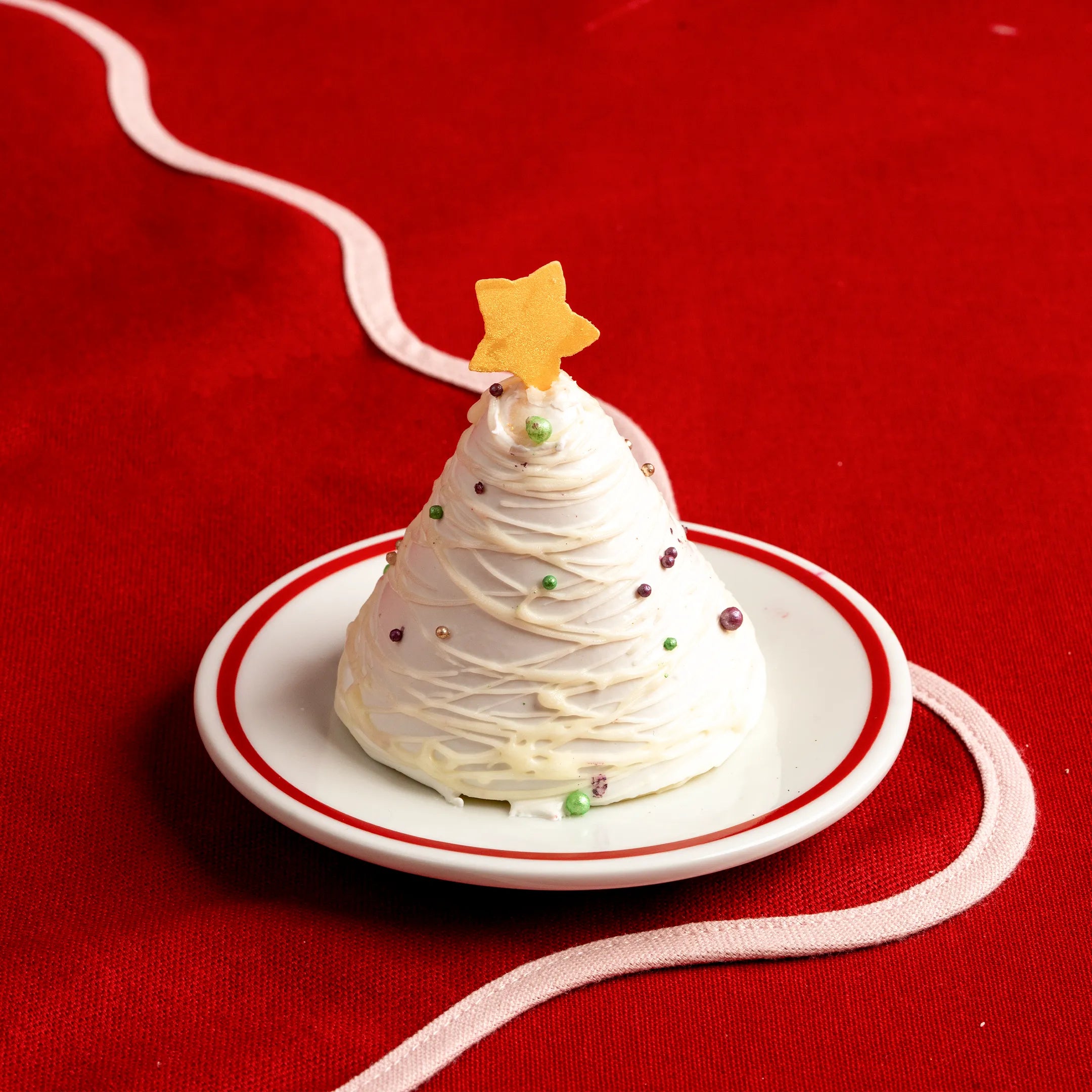 White-chocolate bavarois with tangy red-berry gelée on a delicate chocolate base, crafted as a Christmas tree. CAKE CARE INSTRUCTIONS:1. Keep...