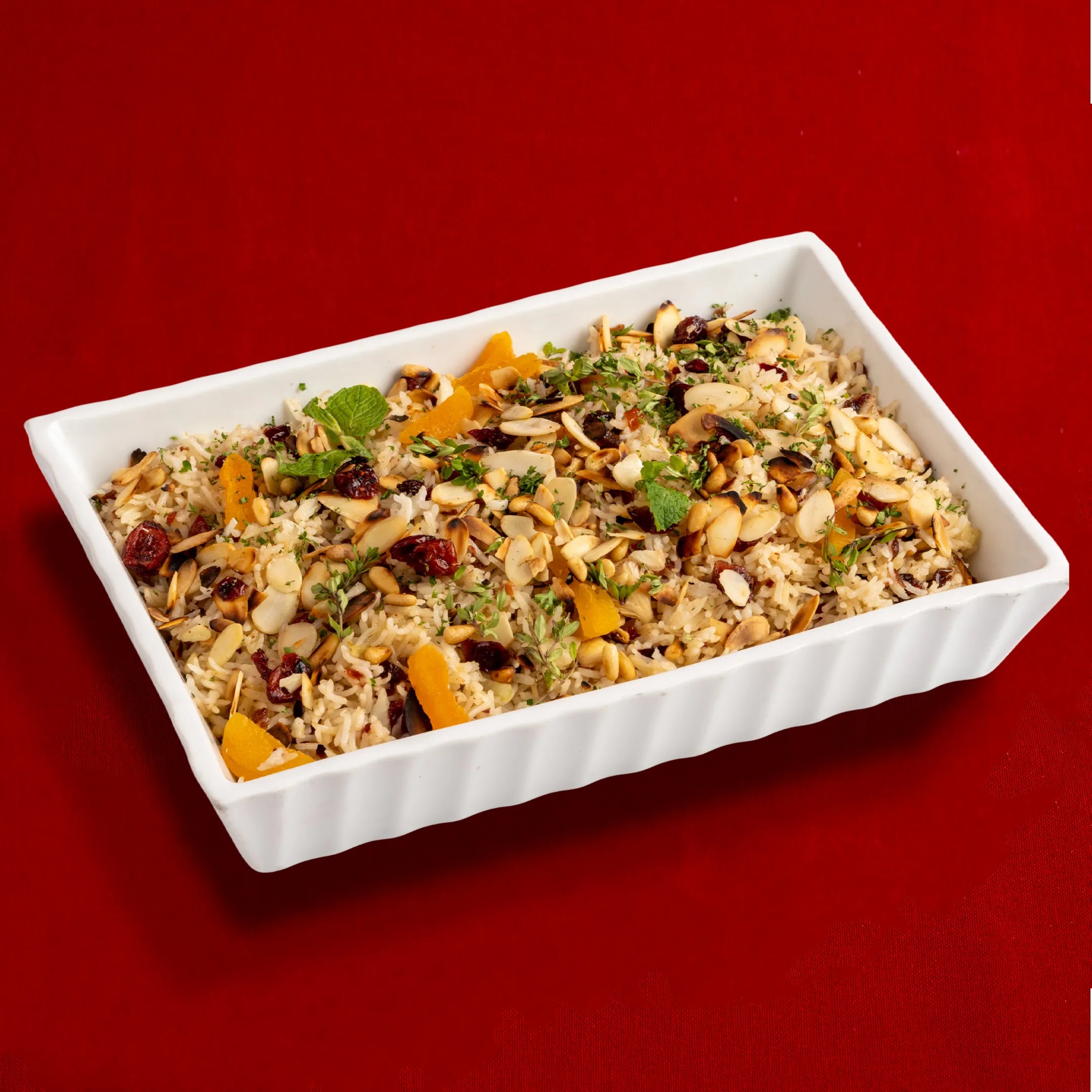 A fragrant and vibrant rice pilaf infused with saffron and warm Moroccan spices, enriched with sweet dried fruits and toasted...