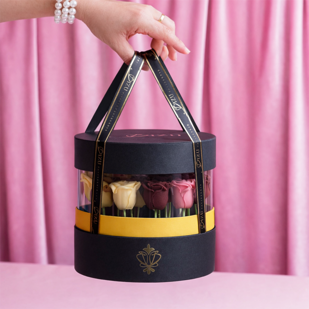 An edible rose arrangement of 14 all-chocolate blooms, handcrafted in Valrhona couverture and finished by hand—each rose hiding a rich chocolate cake center.
