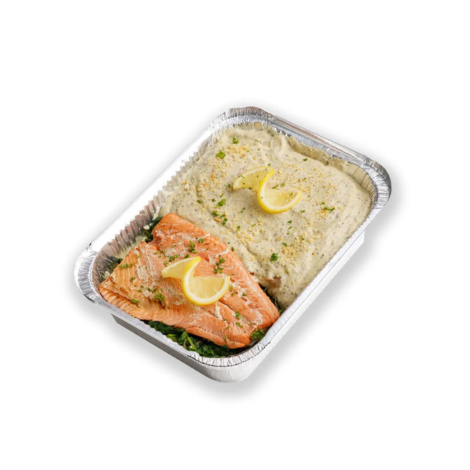 Our baked Norwegian salmon layered with mashed potatoes and creamy spinach topped with parmesan mornay sauce