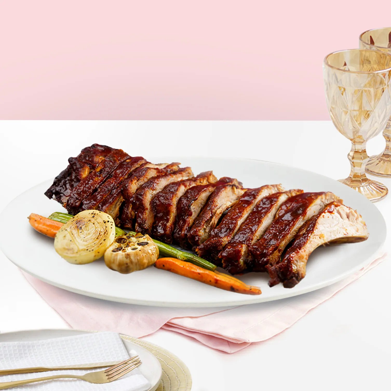 Fall-off-the-bone smoked pork baby back ribs slow-roasted for 5 hours.